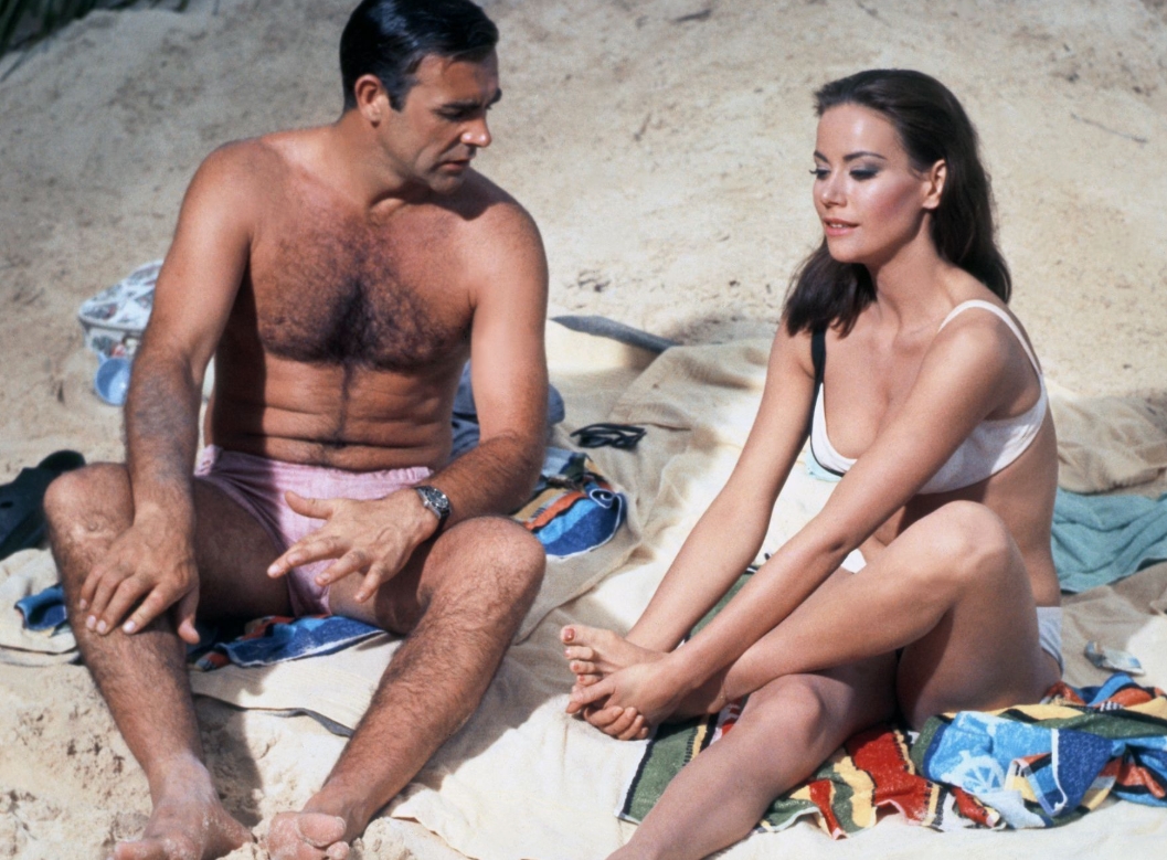 This was the era of “jet-set” elegance: not a pose, but armor. The crisp structure of Connery’s linen shirts, the effortless poise of Miss France Claudine Auger, even soaked in saltwater, radiated an unspoken sophistication. Together, they moved with synchronized grace, turning the high-stakes fantasy of international espionage into something that felt tangible, almost like a lifestyle.